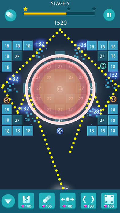 3、道具使用技巧合理利用道具,增加小球数量,震碎方块甚至直接消除一行!